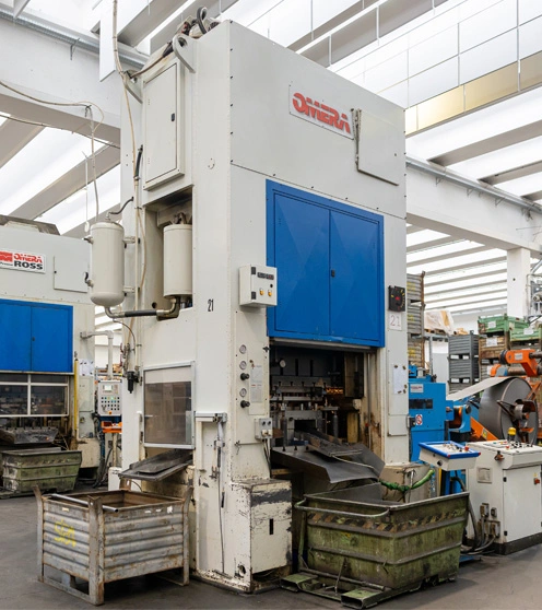Pressa meccanica utilizzata per operazioni di tranciatura e stampaggio della lamiera: garantisce precisione dimensionale, continuità produttiva, uniformità e qualità dei componenti metallici realizzati.
